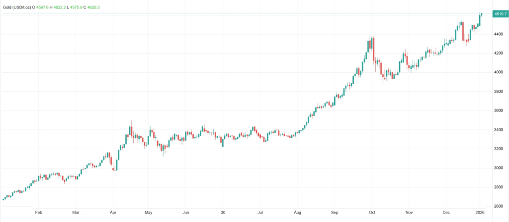 بر اساس این گزارش شاخص تورم CPI (شاخص قیمت مصرفکننده) در دسامبر در ۲٫۷ درصد ثابت ماند و تورم پایه (core inflation) نیز در ۲٫۶ درصد باقی ماند، که پایینترین سطح از سال ۲۰۲۱ است؛ این عدد ماهانه ضعیف تورم پایه انتظارات را تقویت کرد که سیاستهای پولی انقباضیتر نخواهد شد. این پسزمینه تورم ملایم همراه با افزایش تقاضا برای داراییهای امن بود، زیرا نگرانیها درباره استقلال بانک مرکزی آمریکا (فدرال رزرو) و افزایش خطرات ژئوپلیتیکی دوباره مطرح شد.