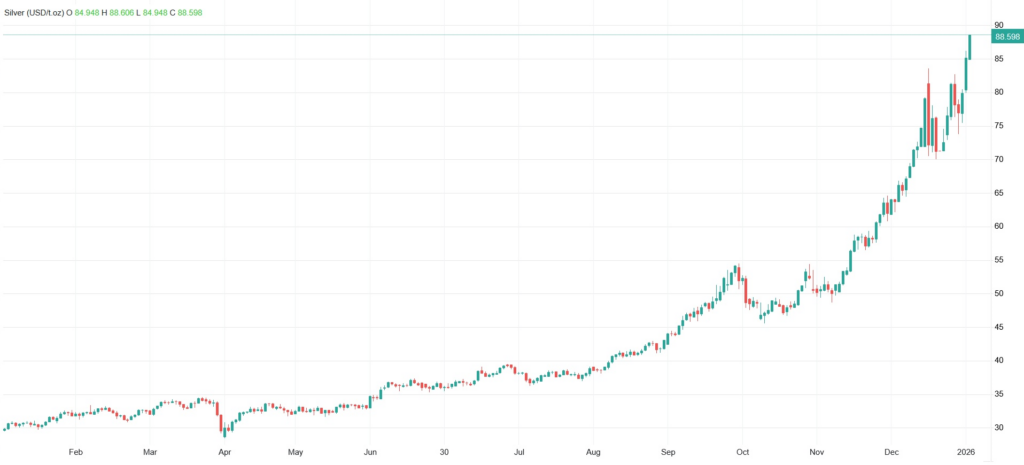 بهای جهانی طلا و نقره با افزایش بیسابقه و ثبت رکوردهای جدید به ترتیب به ۴۶۲۰ و ۸۸ دلار در هر اونس رسید.