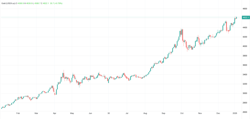 در شرایطی که نگرانیها درباره افزایش بدهی مالی دولت و سؤالات جدیدی درباره استقلال فدرال رزرو پس تحقیقات مرتبط با پاول رییس فدرال رزرو ادامه دارد آن هم در شرایطی که تنشهای ژئوپولیتیکی مداوم در اطراف ایران همچنان حمایتی مضاعف بر افزایش قیمت ایجاد میکند، تقاضایی که از جنس سرمایهگذاری در پناهگاه امن است بالا است.