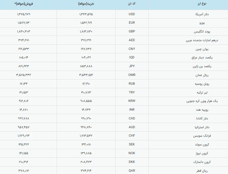 طبق اطلاعات منتشرشده از سوی مرکز مبادله ایران، قیمت خرید دلار آمریکا ۱۳۶ هزار و ۳۵۹ تومان و قیمت فروش آن ۱۳۷ هزار و ۵۹۸ تومان ثبت شد. در حالی که نرخ فروش دلار در روز گذشته حدود ۱۳۷ هزار و ۸۰۰ تومان اعلام شده بود، ارقام جدید نشان میدهد دلار در معاملات امروز با کاهش جزئی ۲۰۰ تومانی همراه شده است.
