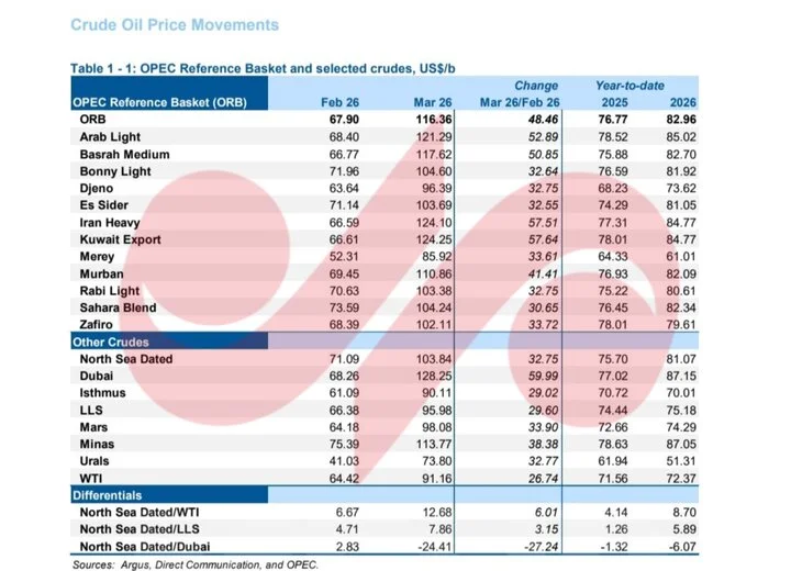 قیمت سبد نفتی اوپک هم در ماه مارس به ۱۱۶ دلار و ۳۶ سنت برای هر بشکه رسید که این مقدار، ۴۸ دلار و ۴۶ سنت بیشتر از ماه فوریه است.