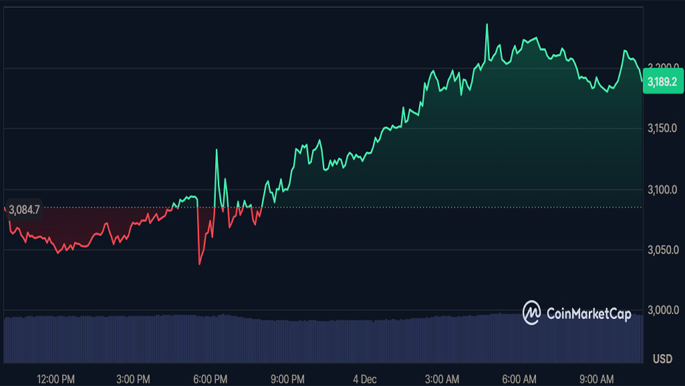 پس از فعالسازی، قیمت اتریوم که در محدوده ۳٬۱۵۰ تا ۳٬۲۱۰ دلار نوسان داشت، با رشد آرام به ۳٬۲۰۰ دلار رسید و حجم معاملات نیز طی چند ساعت از ۲۸٫۲ میلیارد به ۳۲ میلیارد دلار افزایش یافت. دادههای سنتیمنت (Santiment) نشان میدهد این رشد ناشی از انباشت قوی کیفپول نهنگها با دارایی ۱٬۰۰۰ تا ۱۰٬۰۰۰ واحد اتریوم بوده است.