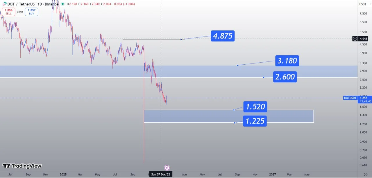 و روندش کماکان نزولیه و پتانسیل اصلاح تا ناحیه حمایتی 1.225 تا 1.52 رو داره.