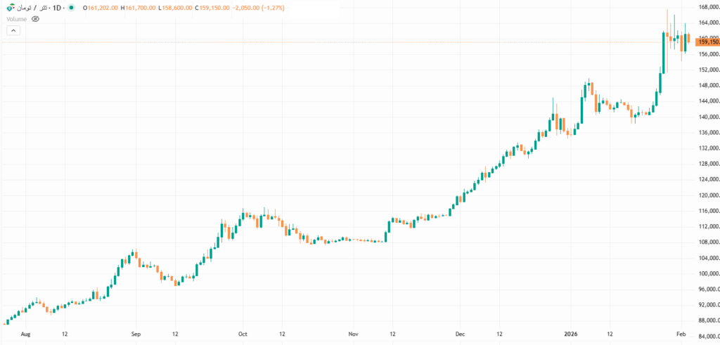 این ارز دیجیتال که از آن بهعنوان دماسنج بازار غیررسمی دلار یاد میشود، پس از عقبنشینی از سقف قیمتی خود، به کانال ۱۵۰ هزار تومان بازگشت و تا محدوده ۱۵۴ هزار و ۲۰۰ تومان نیز کاهش یافت. با این حال، این افت قیمت پایدار نماند و تتر بار دیگر با افزایش تقاضا، وارد کانال ۱۶۰ هزار تومان شد.
