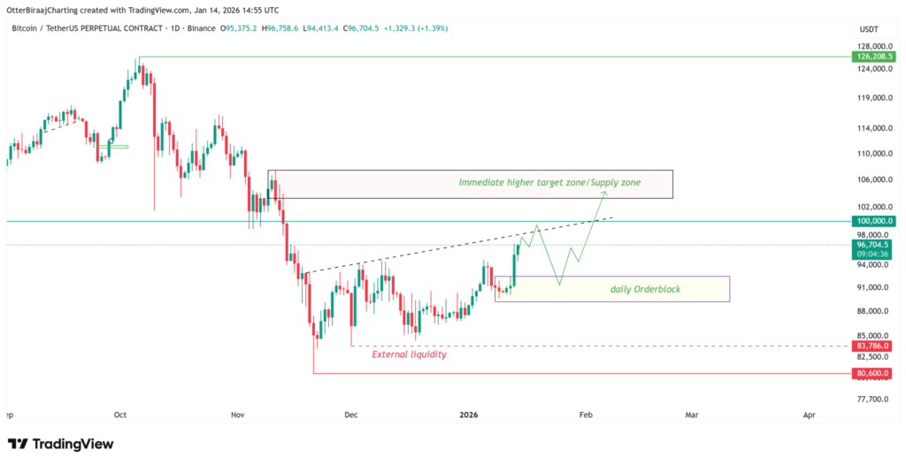 به گزارش هفت کریپتو به نقل از تجارت نیوز، بیت کوین ریکاوری ابتدای سال خود را در دومین هفته ژانویه ادامه داده است. بیت کوین موفق شده با آغازی تازه به بالای سطح 96 هزار دلار دست پیدا کند. رالی جدید طلای دیجیتال تایید کرده است که امید برای ورود به سطوح بالاتر و هدف مهم آتی 100 هزار دلاری وجود دارد.