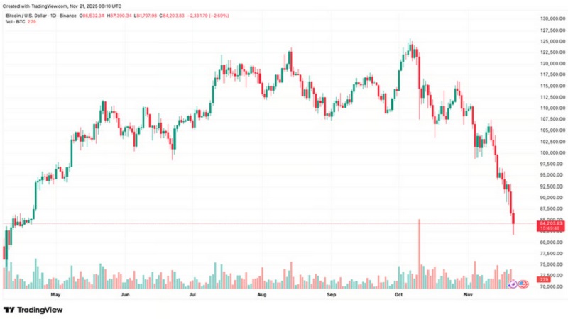 در زمان نگارش این متن، بیتکوین حوالی ۸۳ هزار دلار معامله میشود. ساعاتی پیش در صرافی بایننس قیمت حتی تا زیر ۸۲ هزار دلار نیز پایین رفت و موجی از لیکوییدشدن موقعیتهای اهرمی را در سراسر بازار به راه انداخت.