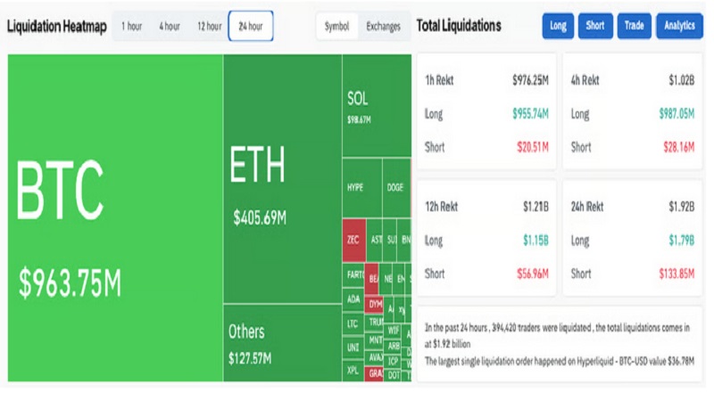 دادههای وبسایت کوینگلس نشان میدهد مجموع ارزش موقعیتهای لیکوییدشده در ۲۴ ساعت گذشته به ۲ میلیارد دلار رسیده است.