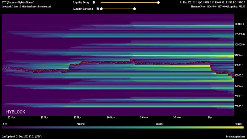 با وجود این سابقه قوی انباشت تاریخی، فشار خرید فعال در بازه ۸۴,۰۰۰ تا ۹۰,۰۰۰ دلار غایب بوده است. در همین حال، بسیاری از هولدرهای کوتاهمدت نسبت به میانگین قیمت ورود خود در ۱۰۴,۶۰۰ دلار همچنان در زیان قرار دارند که بازار را در یک ناحیه کمعمق از منظر نقدینگی قرار میدهد.