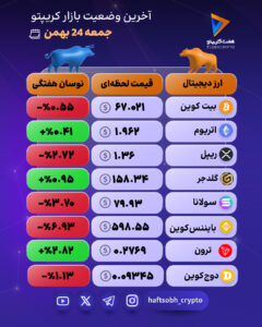 به گزارش هفت کریپتو، بازار ارزهای دیجیتال در روز جمعه ۲۴ بهمن تصویری از نوسانهای محدود اما جهتدار ارائه میدهد؛ بازاری که نه در مسیر صعودی قدرتمند قرار دارد و نه نشانهای از ریزش سنگین در آن دیده میشود. این وضعیت بیشتر شبیه یک دوره «تنفس» و بازآرایی نیروهاست؛ رفتاری که معمولاً پس از جهشهای سریع یا اصلاحهای سنگین در بازار رخ میدهد.