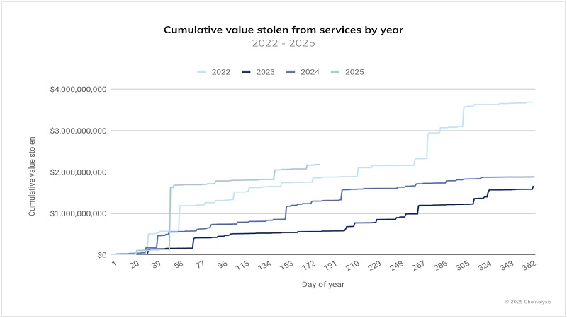 از اواسط سال 2025 میلادی، 2.17 میلیارد دلار رمزارز از حساب کاربران دزدیده شده است. این مبلغ بیشتر از کل میزان رمزارز دزدیده شده در تمام سال 2024 بوده است. این مبلغ ممکن است تا پایان سال جاری میلادی نیز بیشتر از قبل شود. شرکت Elliptic مشخص کرده است که هکرهای کره شمالی به تنهایی بیش از دو میلیارد دلار در سال 2025 را از کاربران دارای رمزارز به سرقت بردهاند.