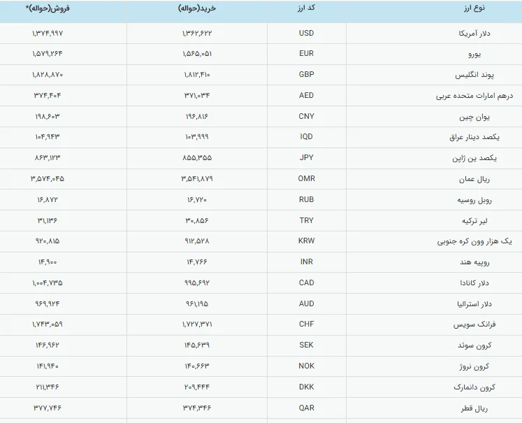 نرخ ارز در مرکز مبادله ایران در روز سهشنبه ۲۶ اسفند ۱۴۰۴ اعلام شد و بر اساس دادههای منتشرشده، قیمت دلار در محدوده ۱۳۷ هزار تومان قرار گرفت و نسبت به روز گذشته تغییر محدودی را تجربه کرد.