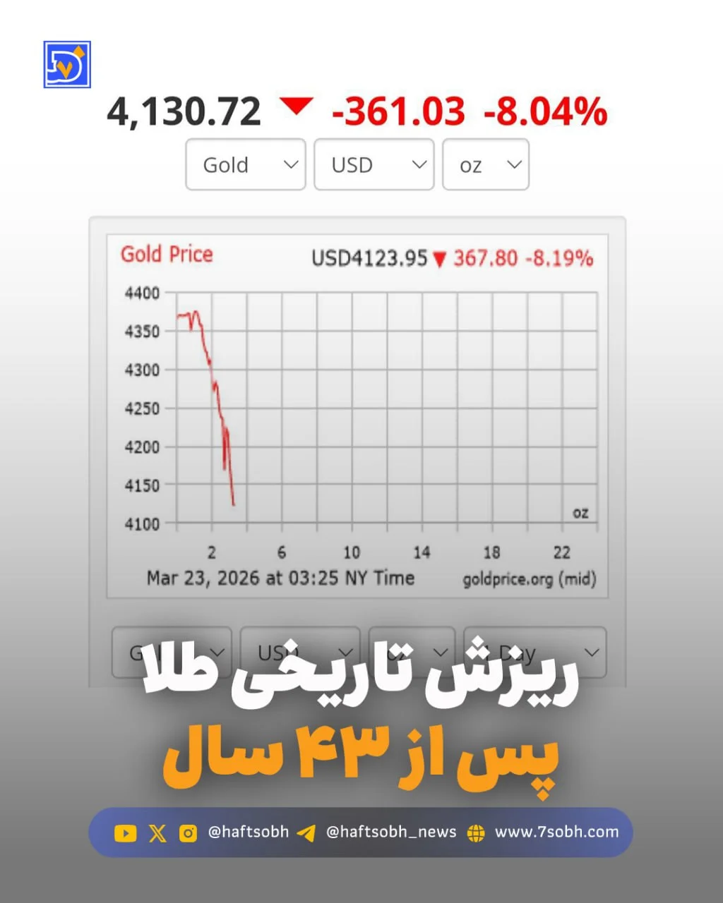 انس جهانی طلا که در شروع جنگ به 5,300 دلار رسیده بود، با رسیدن به عدد 4,130حدود 1,200دلار ریزش داشته!