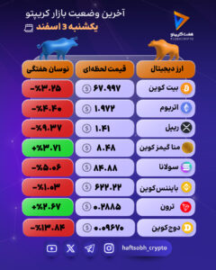 بازار کریپتو در سوم اسفند ۱۴۰۴ با موجی از اصلاح قیمتی روبهرو شد؛ بهطوریکه اغلب رمزارزهای اصلی از جمله بیتکوین، اتریوم، ریپل و سولانا کاهش قابلتوجهی را تجربه کردند و تنها دو رمزارز توانستند رشد مثبت ثبت کنند. این روند نشان میدهد سرمایهگذاران در هفته اخیر به سمت کاهش ریسک حرکت کردهاند و فشار فروش در آلتکوینها بیش از همیشه محسوس بوده است.