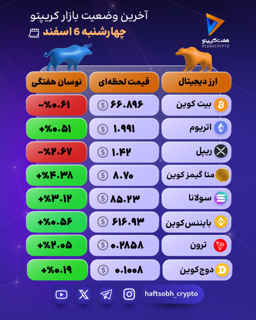 مطالب هفت صبح کریپتو صرفاً با هدف اطلاعرسانی و آموزش در حوزه رمزارزها منتشر میشود و به هیچوجه توصیهای برای خرید، فروش یا سرمایهگذاری نیست. فعالیت در بازار ارزهای دیجیتال با ریسک همراه است و هر فرد باید پس از تحقیق و با پذیرش کامل مسئولیت تصمیمگیری کند.