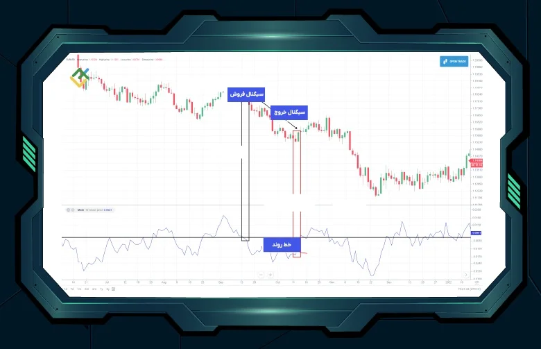 خط صفر، نقطه میانی اندیکاتور مومنتوم است. حرکت این اندیکاتور در بالا یا پایین این خط، اطلاعات مهمی درباره قدرت و جهت روند به ما میدهد: