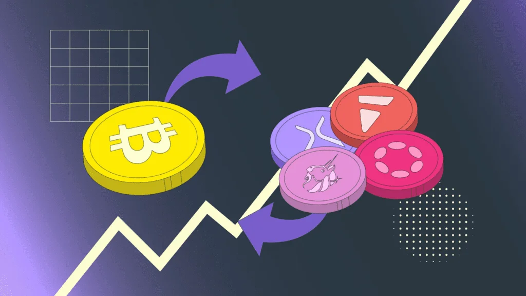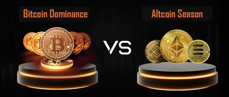 عملکرد آلت کوینها عامل کلیدی دیگری در تغییر دامیننس بیت کوین است. در دورههایی که بازار وارد فاز آلت سیزن میشود، سرمایه از بیت کوین به سمت آلت کوینها منتقل میشود و دامیننس کاهش پیدا میکند. این چرخه رفتاری در اغلب دورههای بازار تکرار شده و یکی از الگوهای شناختهشده در بازار ارزهای دیجیتال است.