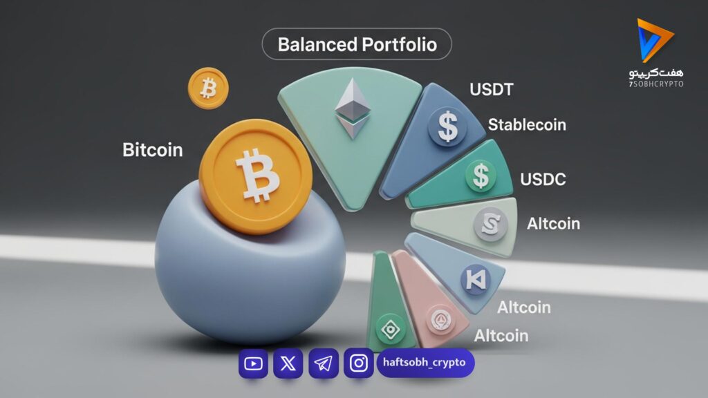 پرتفوی ارز دیجیتال مجموعهای از داراییهای دیجیتال شماست، شامل بیت کوین، اتریوم و آلتکوینهای دیگر. هدف اصلی از ساخت پرتفوی متوازن، کاهش ریسک کلی سرمایهگذاری و افزایش فرصتهای سودآوری است. هرچه تنوع پرتفوی بیشتر باشد، اثر نوسانات یک ارز بر کل سبد کاهش مییابد و سرمایه شما مقاومتر خواهد بود.