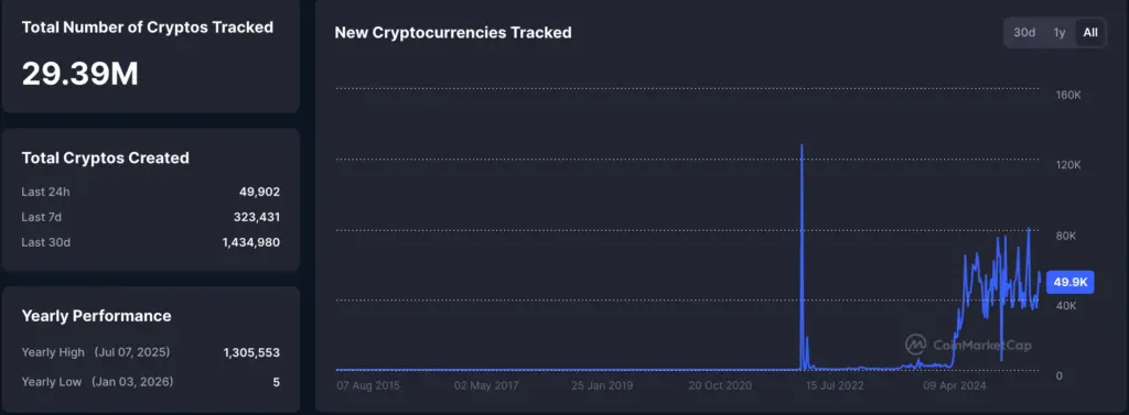 یکی از تفاوتهای بزرگ این چرخه با دورههای گذشته، انفجار تعداد ارزهای دیجیتال است. میلیونها توکن جدید در بازار حضور دارند و همگی برای جذب نقدینگی رقابت میکنند.