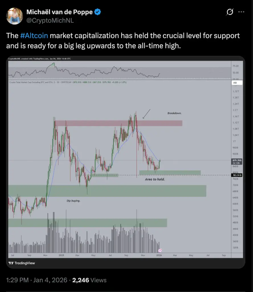 یکی از تحلیلگران شناختهشده بازار معتقد است ارزش کل آلت کوینها—بهجز بیت کوین و اتریوم—پس از یک دوره تثبیت طولانی، آماده حرکت جدیدی به سمت سقفهای تاریخی است.